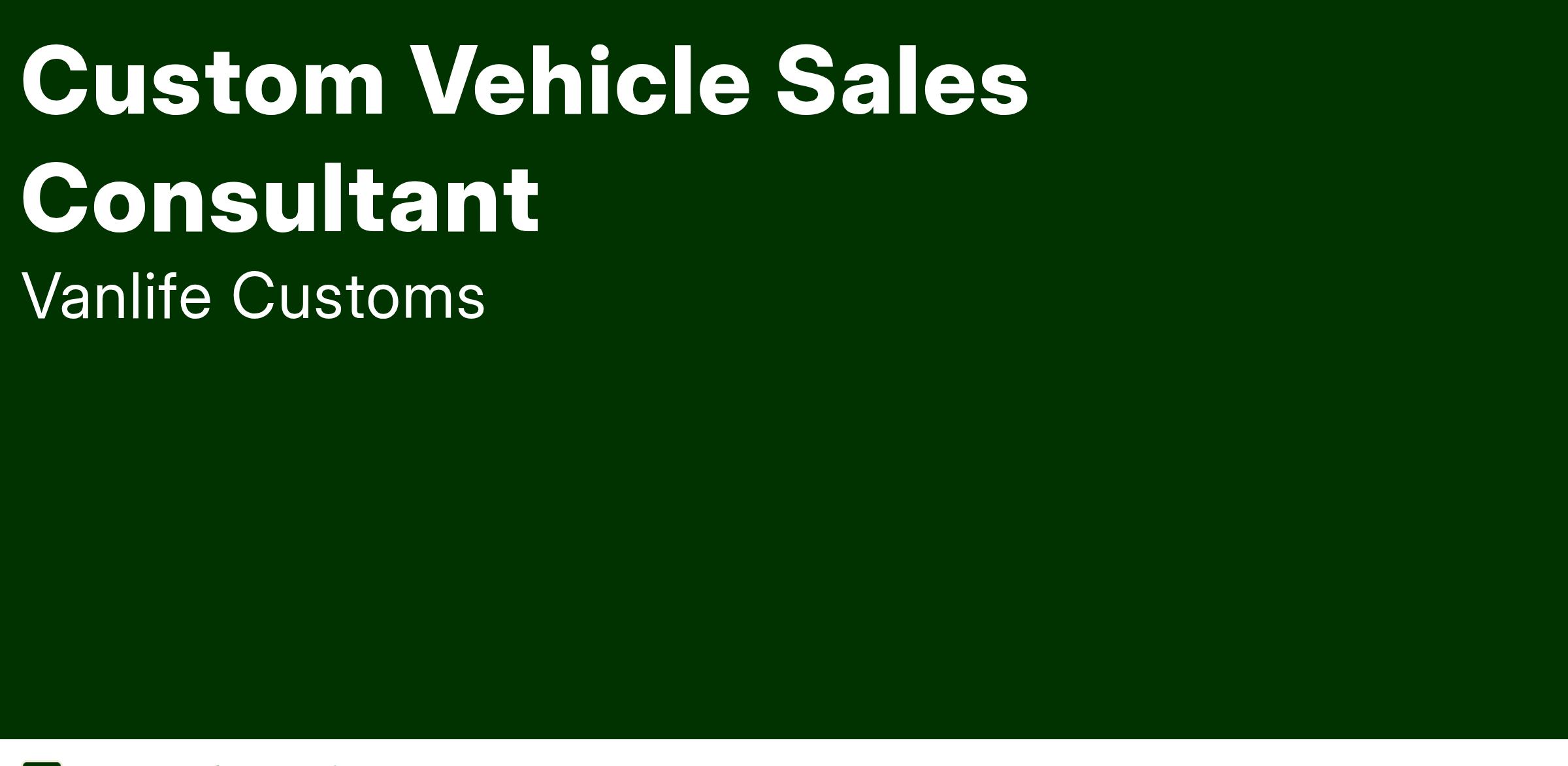 We are looking for a passionate, full-time Custom Vehicle Sales Consultant to join our team and drive growth in our custom build business. You will be the primary sales professional responsible for guiding customers through their van build journey - from initial consultation through contract signing - while building lasting relationships that reflect our commitment to exceptional craftsmanship and customer service.