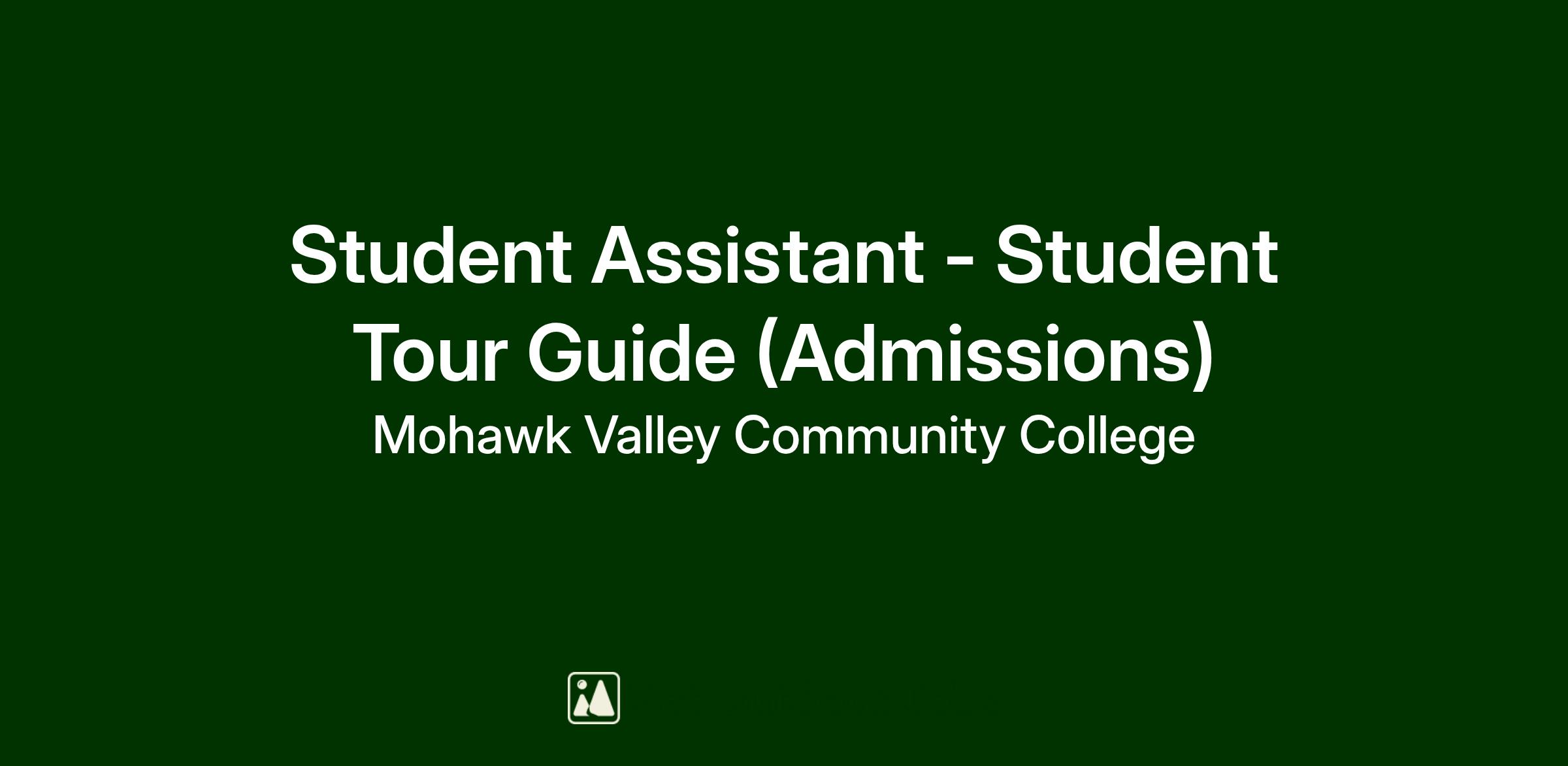Student Assistant - Student Tour Guide (Admissions) Serves as Student Tour Guide in the Office of Admissions by taking prospective students and their families or prospective student groups on walking tours of the MVCC campus. Additional job duties include: If interested, please contact: Special Instructions: Please bring a copy of your current class schedule at the time of your interview.
