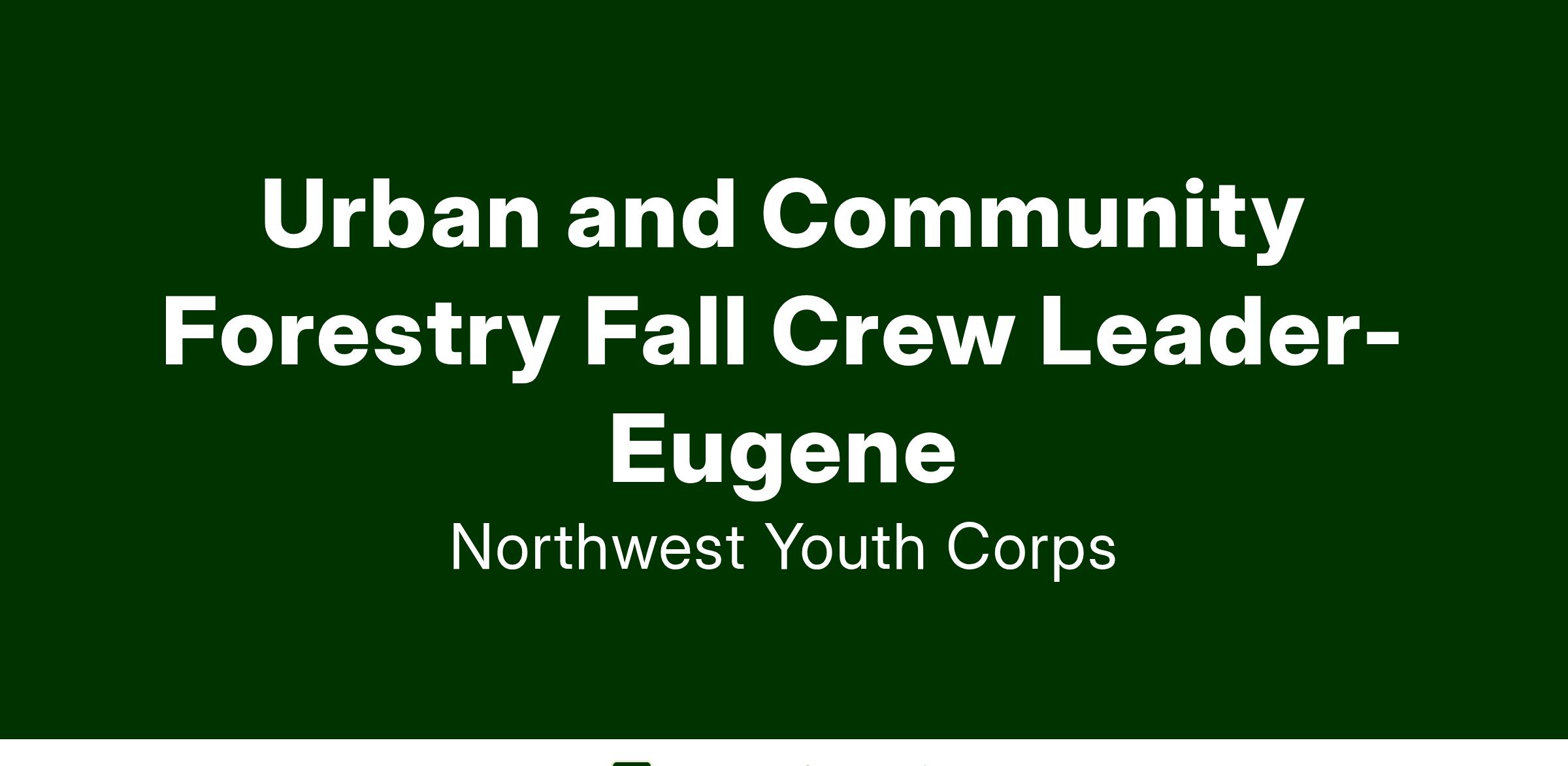 Eugene Urban Community Forestry (UCF) Young Adult Crew Leader (CL's) will manage and supervise crews of up to 5 young adults, ages 19-26, during the fall. Schedules will typically be Monday through Friday (or Tuesday through Saturday); however, schedules may vary for certain training, etc days. Crew Leaders are responsible for completing a variety of conservation-oriented projects on public and/or private lands and implementing a safe and highly efficient crew experience, including facilitation of work to be performed, break times, our education curriculum, and more.